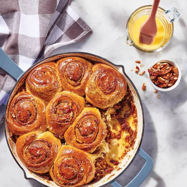 This 12-Inch Enamel Skillet from Figmint™ is a versatile cookware staple you can use to whip up a wide variety of dishes. Designed with a 12-inch diameter and 2.54-quart capacity, this enamel skillet is compatible with electric, gas and induction stoves. The enamel coating promotes long-lasting use, and the skillet can be hand washed for easy cleaning.
