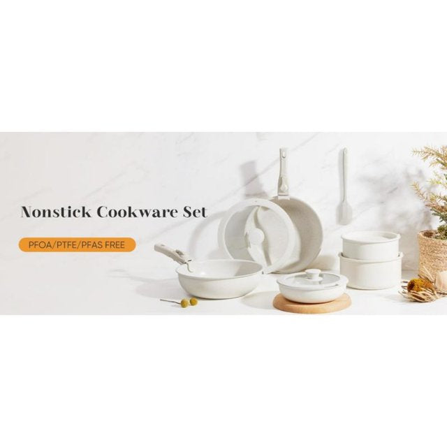 12pcs Non-Stick Cookware Set, Pots and Pans Set with Spatula and Detachable Handle for Kitchen, Black