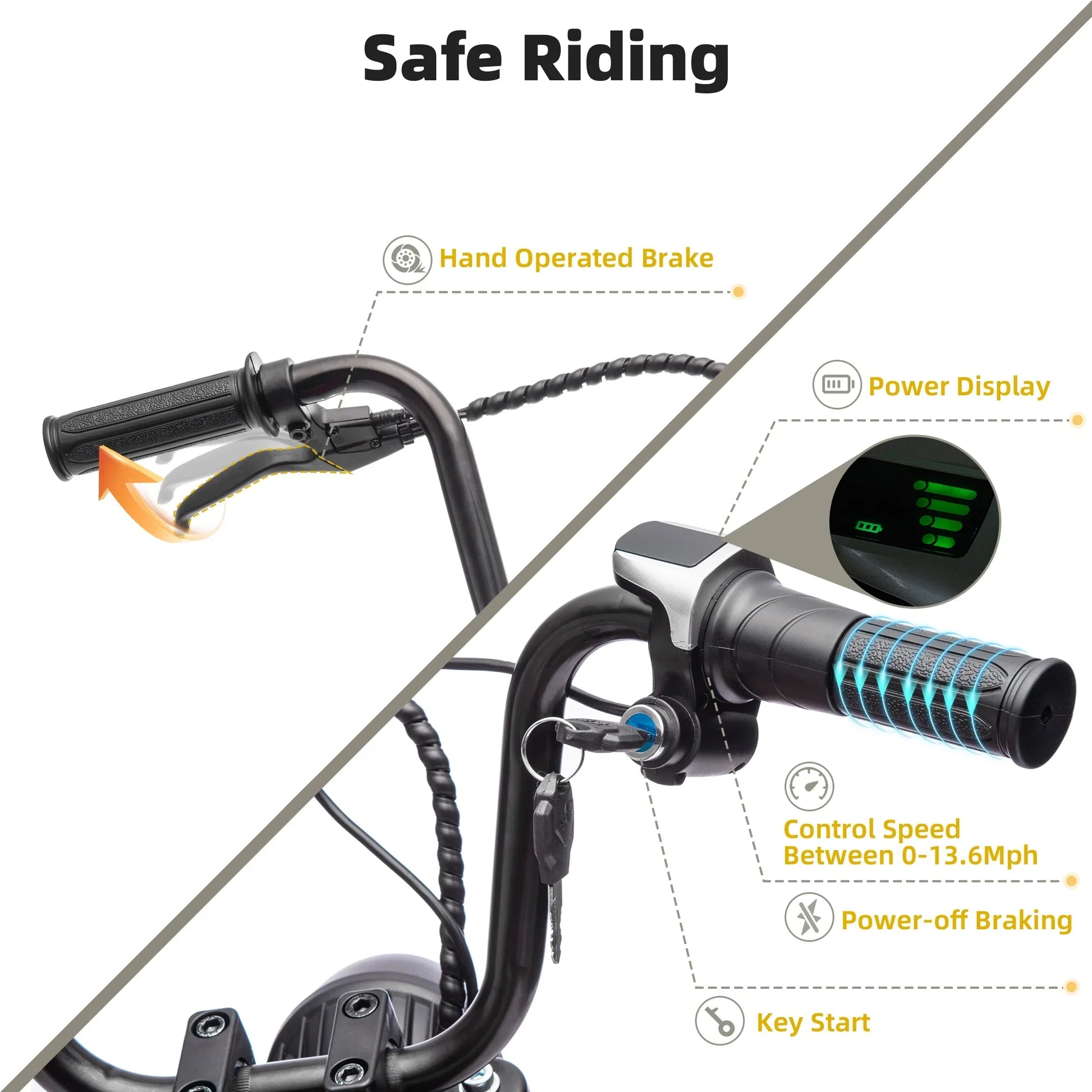 Powerful Battery: Equipped with a 24V9AH battery, it reaches speeds up to 13.6mph and supports a weight of up to 132 lbs.