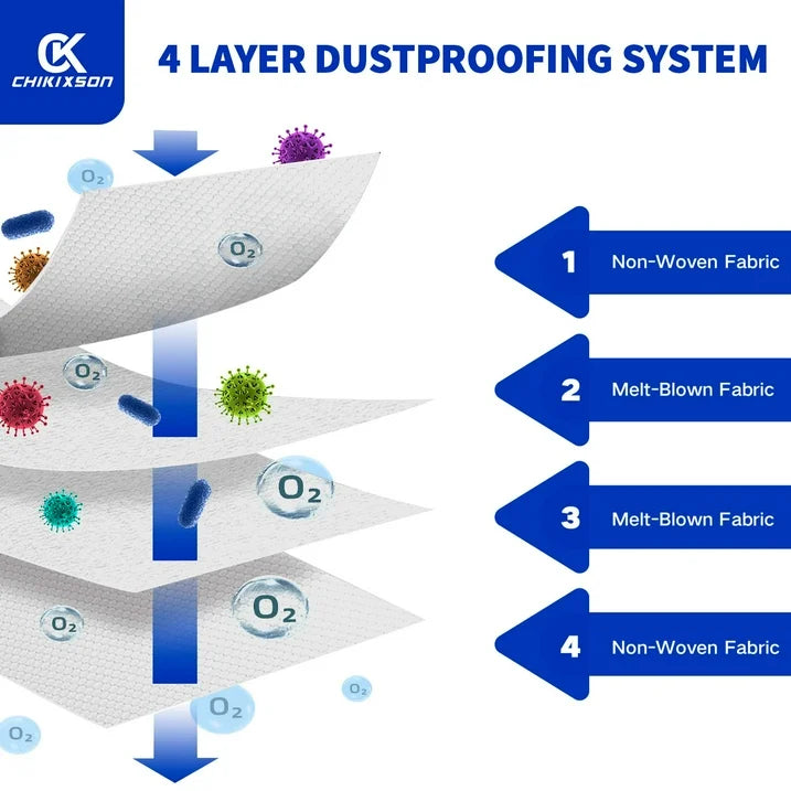 - The dust bag featuring a unique zipper design with added guards, they prevent dust leakage effectively. Each bag employs a 4-layer fabric design with 2 layers of ultra-fine meltblown fiber filtration and 2 layers of non-woven fabric for superior filtration, capable of capturing 99.9% of dirt and debris.