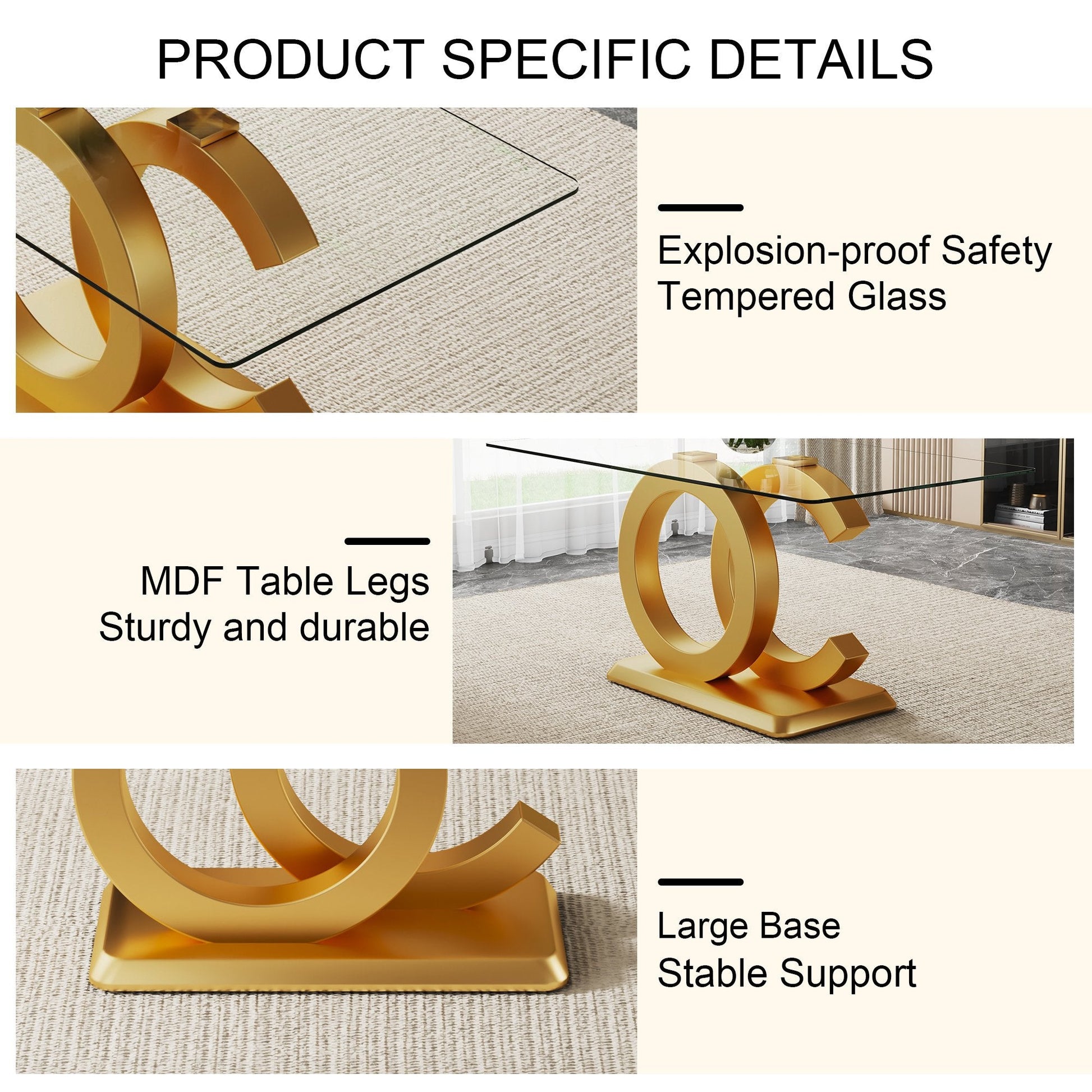 63" Modern Glass Dining Table Set with 6 White Pu Leather Chairs, 7 pieces of Dining room Set for Kitchen Dining Room Living Room Office