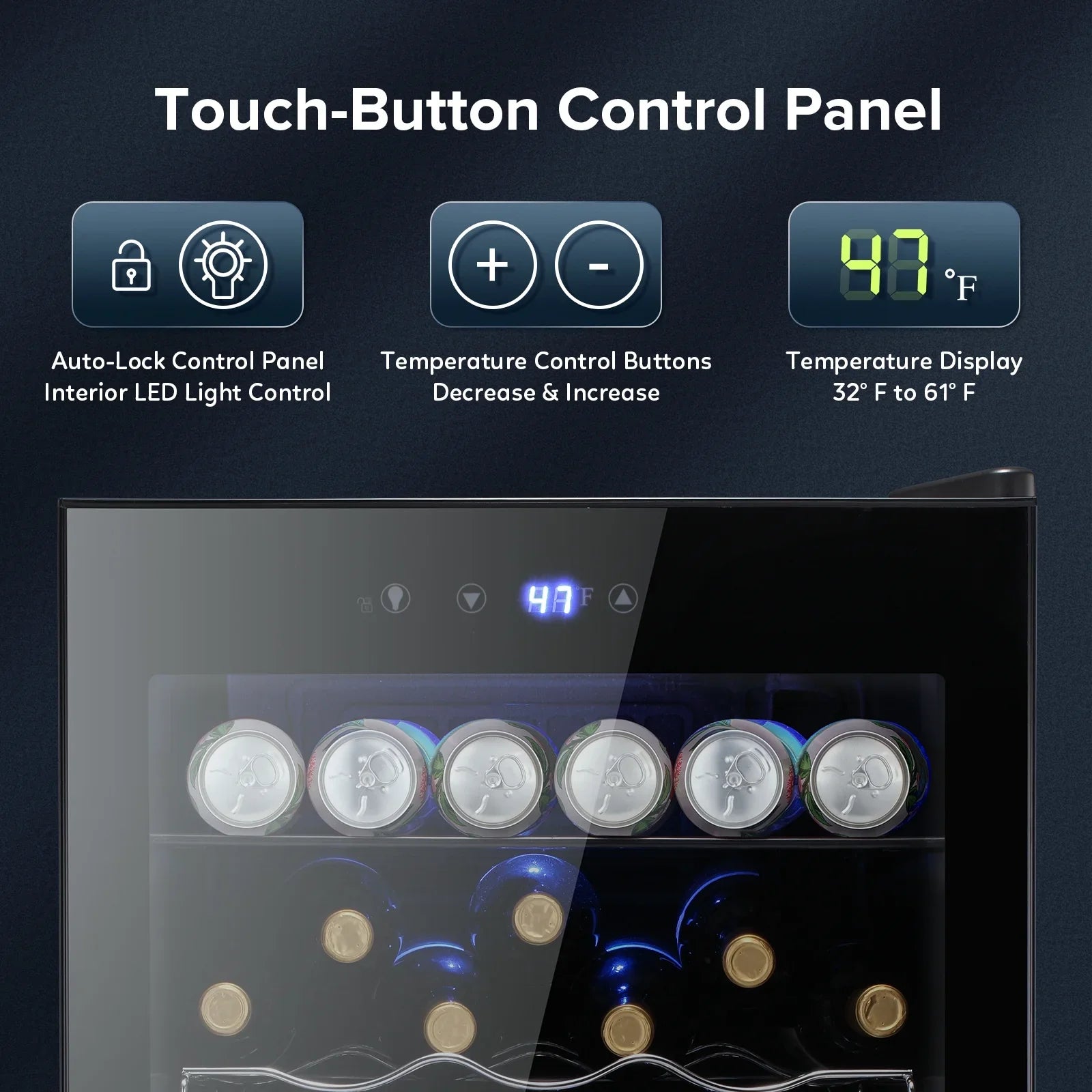 Auseo 145 Cans Beverage Refrigerator Cooler, Black Glass Door, Adjustable Shelf, Bar/Office/Home, Black