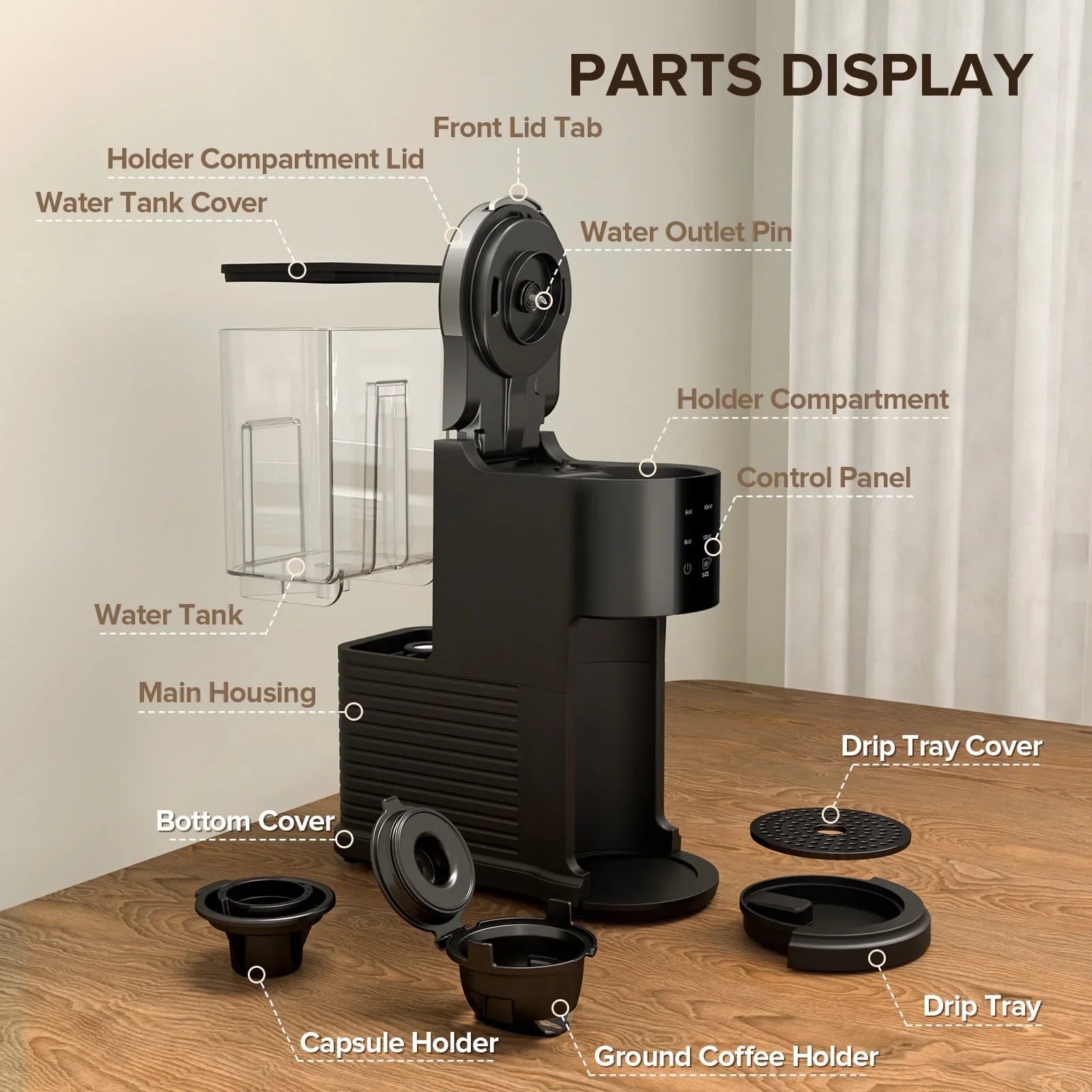 Auseo 2.0 1200W Single Serve Coffee Maker for K-Cup Pod and Ground Coffee Compatibility, Fast Heating, 40oz Removable Water Reservoir, Black for Home/Office/RV