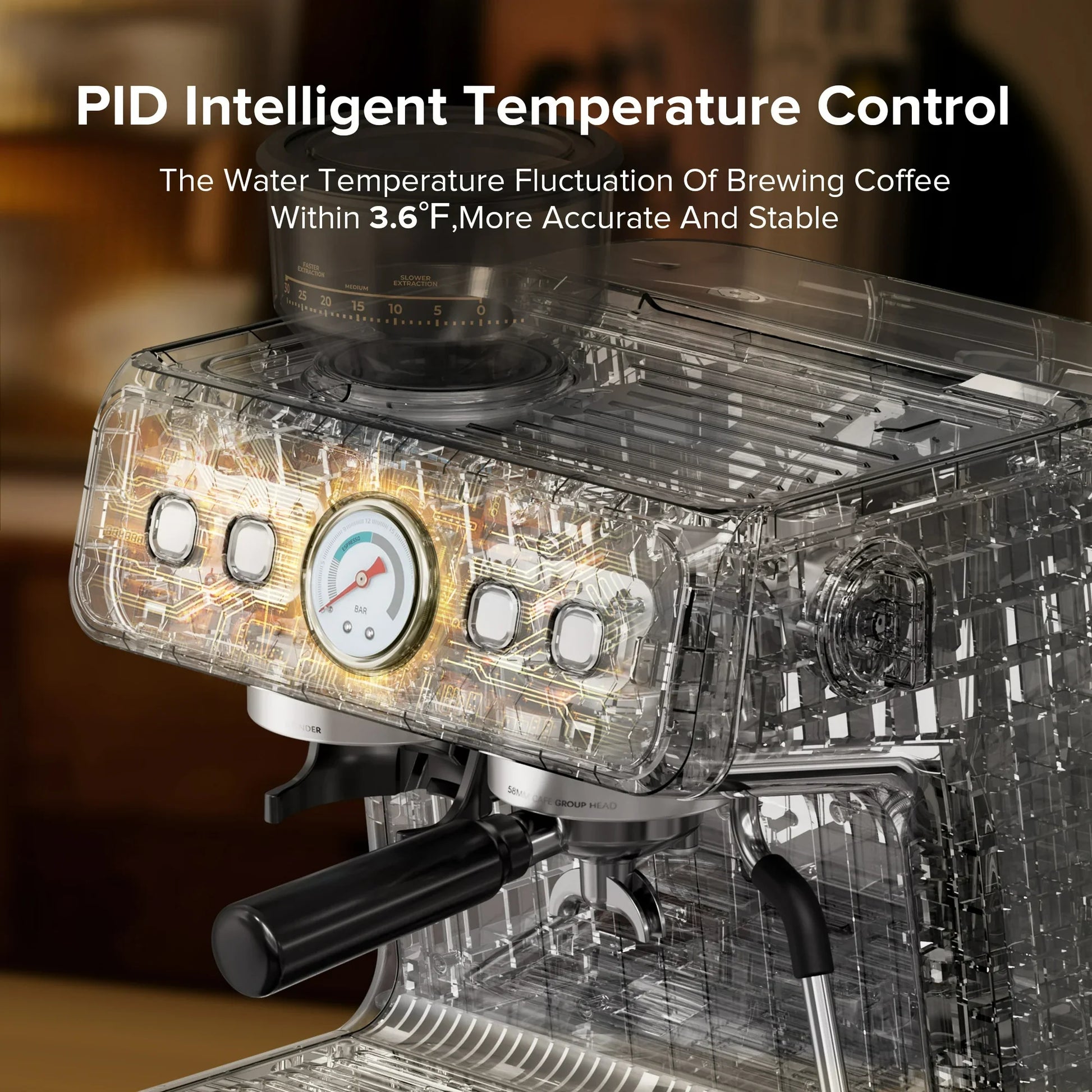 Auseo Coffee Machine with Conical Burr Grinder and Steam Wand, 1&2 Cups, Espresso/Cappuccino/Latte/Mocha for Home, Silver