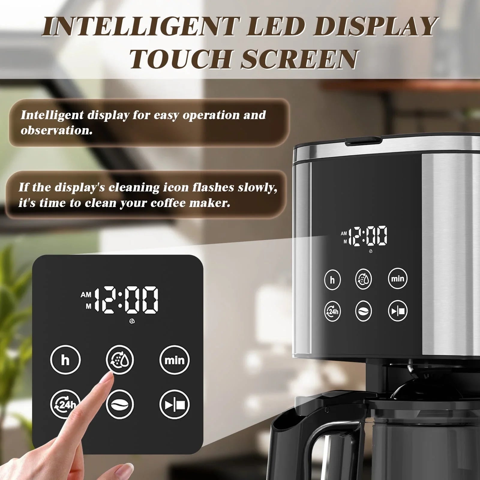 Auseo Drip Coffee Maker with Glass Carafe, 10-Cups Programmable, 2 Coffee Strength Options, Time Control, Warming Function for Home