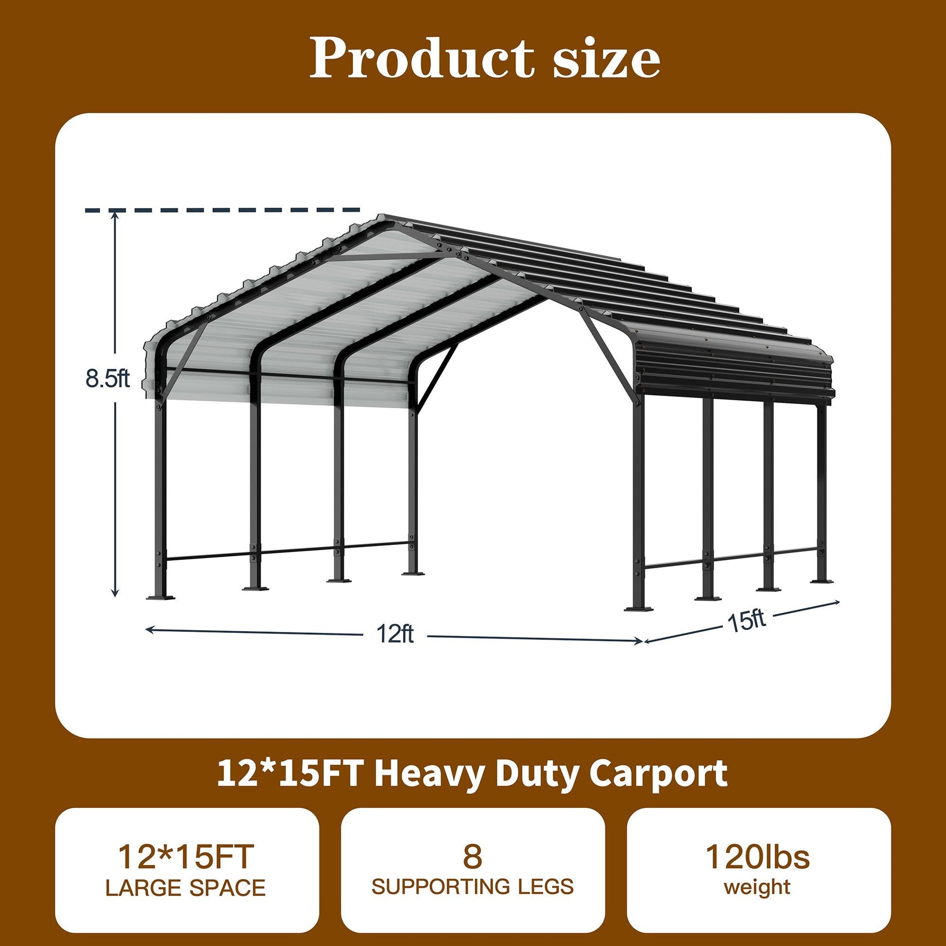 Safeguard your vehicle with the VEIKOUS 12'x15' Heavy-Duty Metal Carport—designed for extreme weather resilience! Constructed with military-grade galvanized steel, this compact shelter features a 2"x2" reinforced steel frame and a rustproof wavy roof treated with double-layer anti-corrosion coating for 10-year durability. The sloped roof design and high-density waterproof seals prevent leaks during storms, while patented snap-on connectors enable quick two-person assembly in 2 hours. With 9.7-ft vertical clearance and a spacious 12'W x 15'D footprint, it easily accommodates 1-2 cars or an SUV with extra storage space, supporting up to 1,800 lbs on its roof—ideal for vehicle protection, backyard storage, or patio shade. Reinforced ground stakes and wind-resistant brackets ensure stability in 75 mph winds, delivering rock-solid protection for your assets.