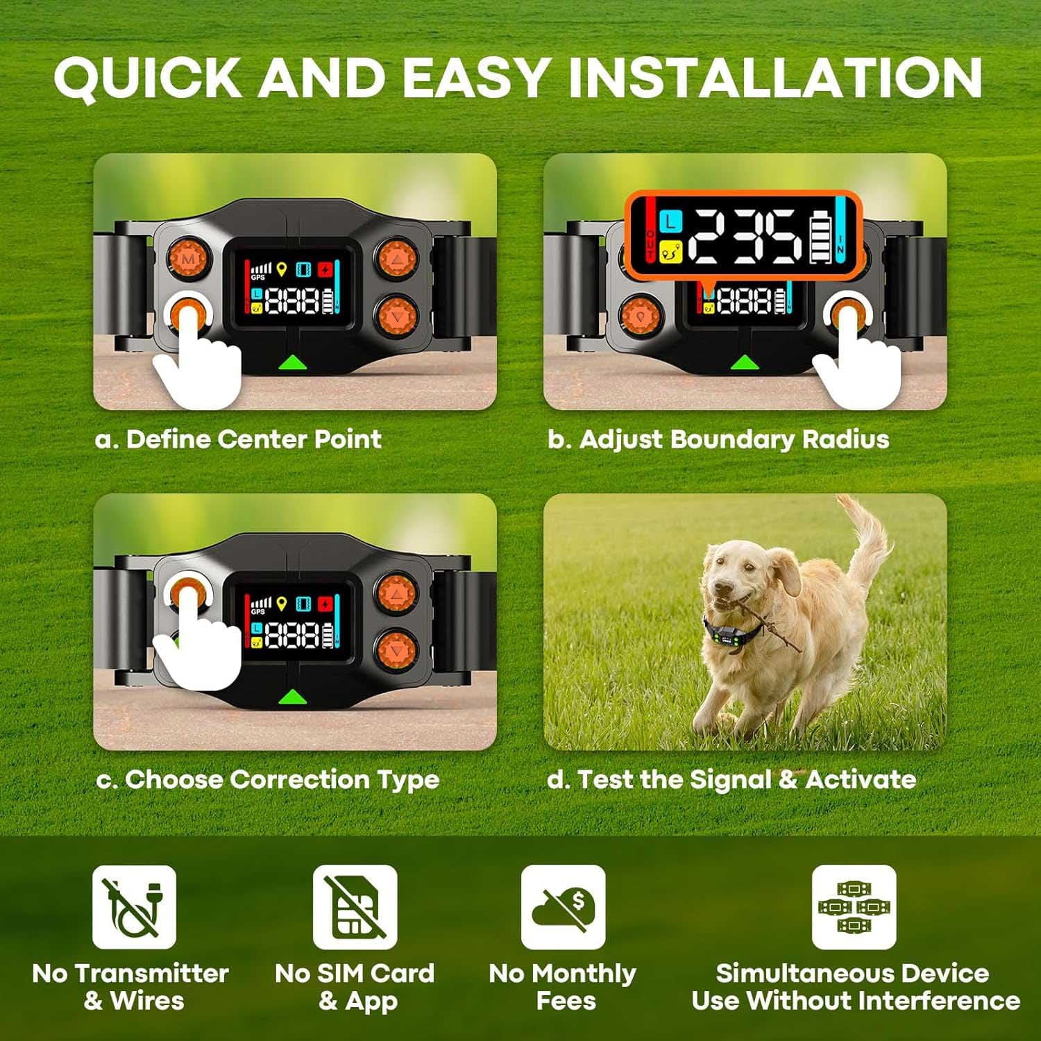 CICPAP GPS Wireless Dog Fence – Electric Dog Fence Collar with 3 Warning Modes, Up to 3000ft Range, IPX7 Waterproof Collar, Pet Containment System for Outdoor Use, Fits Dogs 15–110 lbs