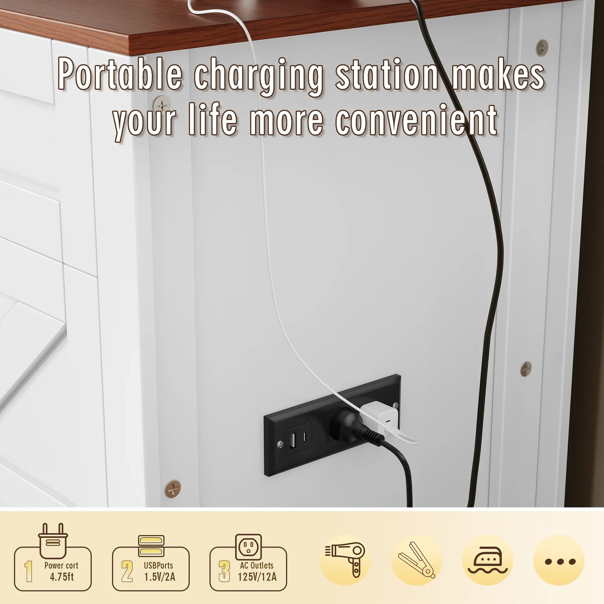 [Anti-Tip + Built-In Charging] - Safety meets convenience: Anti-tip anchors secure the vanity, while a side-mounted charging socket powers hair tools or devices. Our Vanity Sets keep you connected and worry-free.