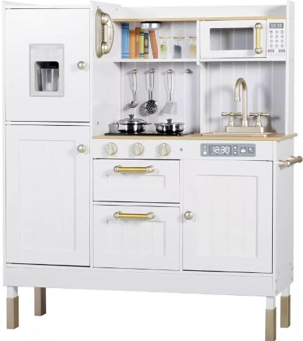 Kinder King Wooden Kids Play Kitchen, Toy Kitchen Playset for Toddler, Realistic Kitchen Sets w/Lights & Sounds, Gift for Boys Girls Age 3+, Gold