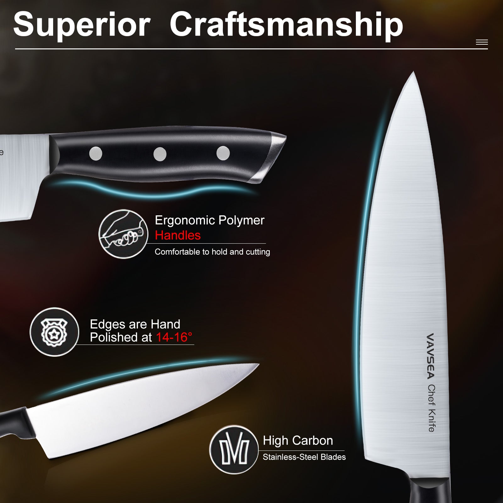 Knife Block Set,12 Pcs German Stainless Steel Kitchen Knife Set with Block, Knives Set with Self Sharpening, Dishwasher Safe, Anti-slip Handle, Black