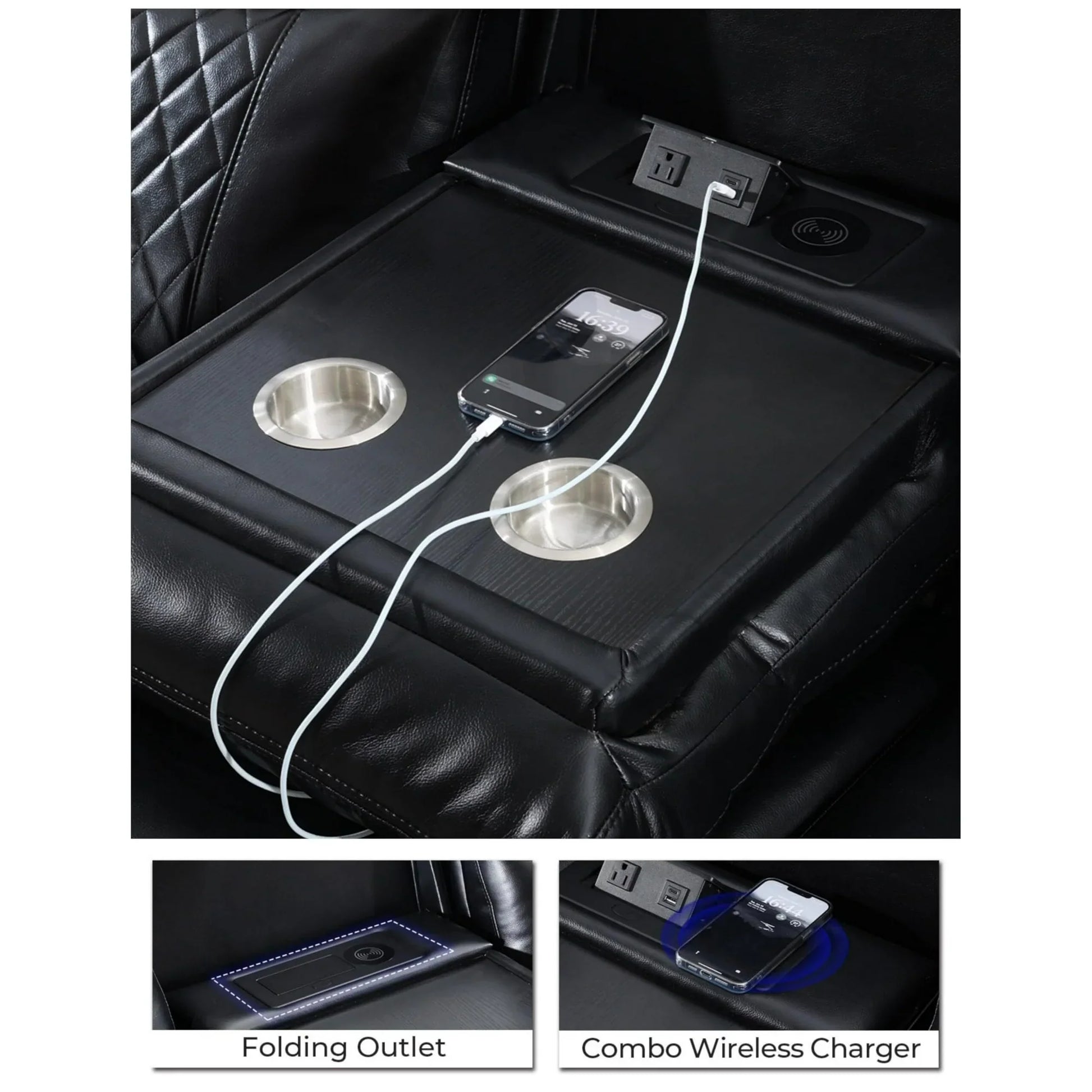 - Built-In Entertainment Features: Includes USB ports, wireless charging, LED ambient lighting,cup holders, and a built-in bass speaker for enhanced comfort and functionality.