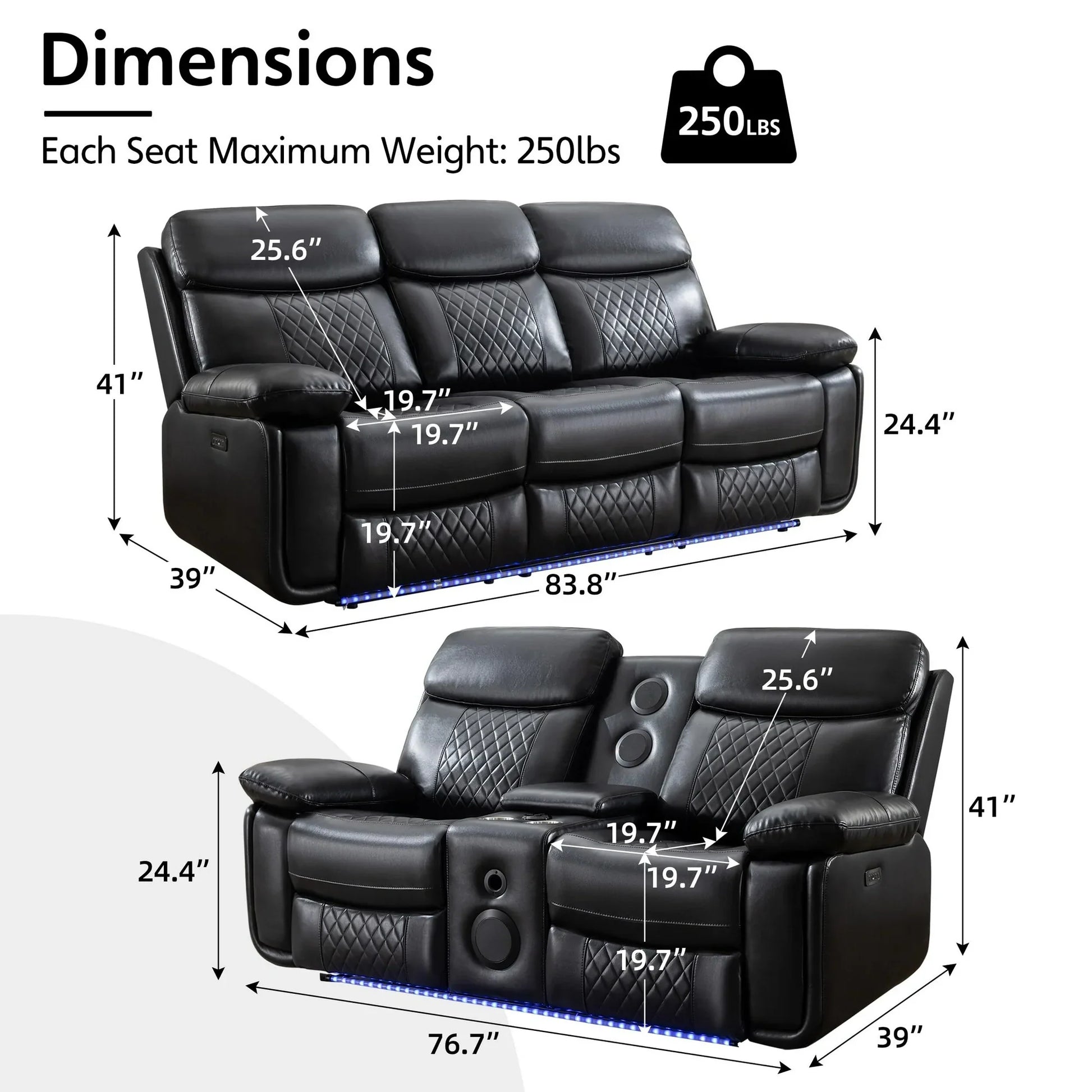 - Sleek Design and Ample Space: The stylish modern design fits well in any room, with the power reclining sofa measuring 83.8" in length,the loveseat measuring 76.7", providing spacious seating.