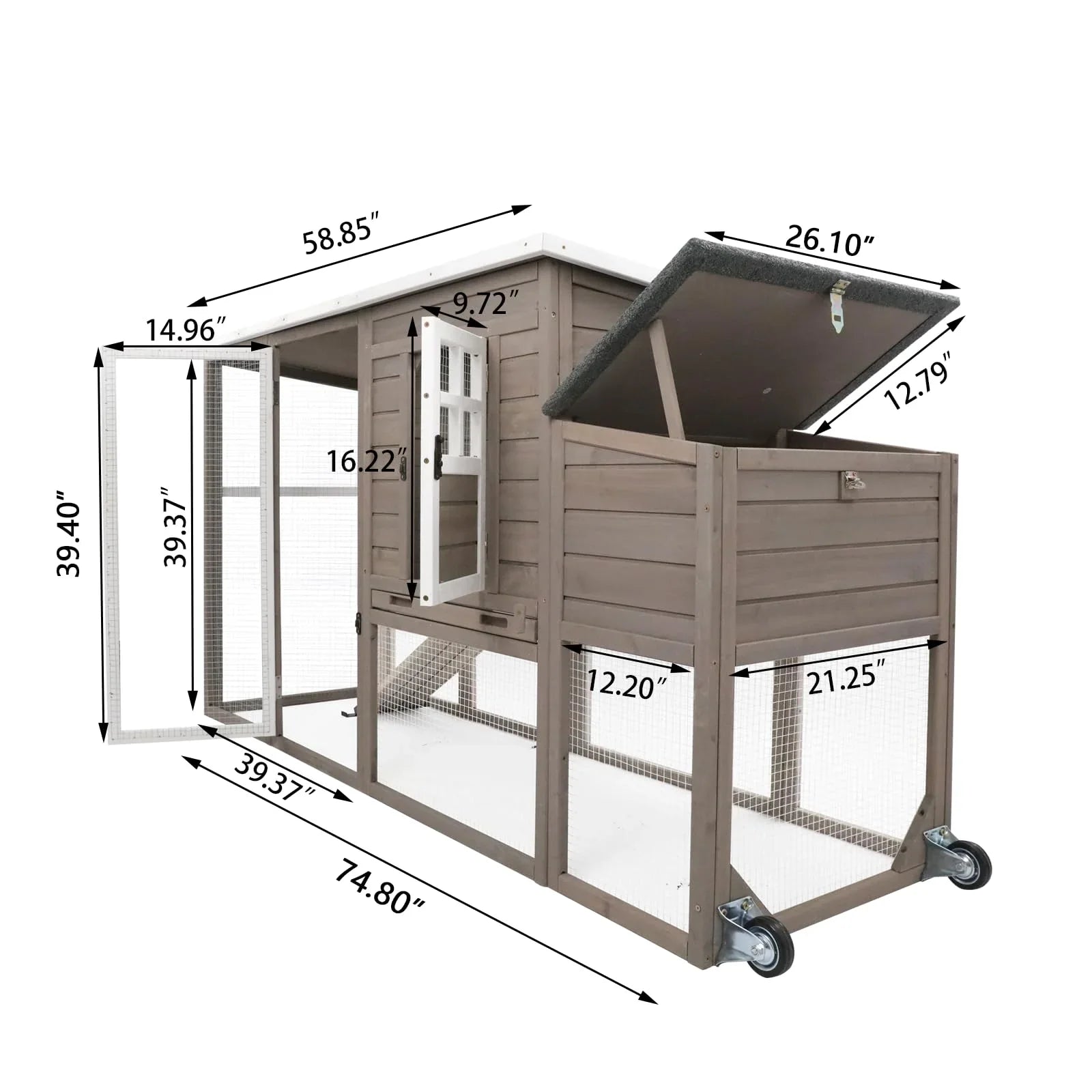 - PULL-OUT TRAY: The pull-out tray is crafted from metal alloy with a smooth surface, making it easy to clean and maintain the chicken coop.