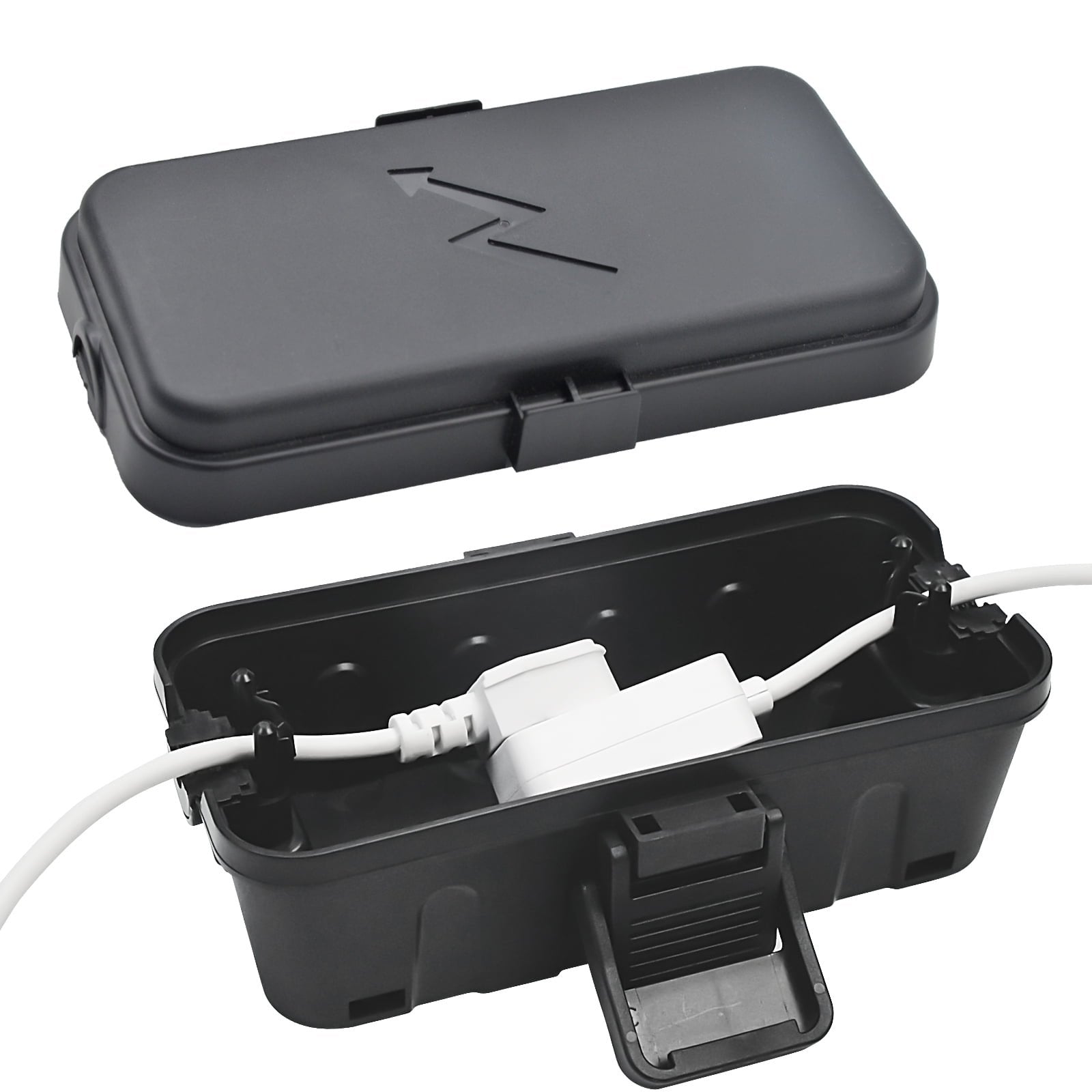 - Keep outdoor cord connection secure and protected. With the 4 clips, top lid, and rubber gaskets, this outdoor extension cord cover box is IP54 waterproof. Perfect to seal 10/12/14/16 gauge cord, braided cable and flat wire. Features with large space, good to protect your outdoor power strip, timer outlet plug, extension cord, large adapter.