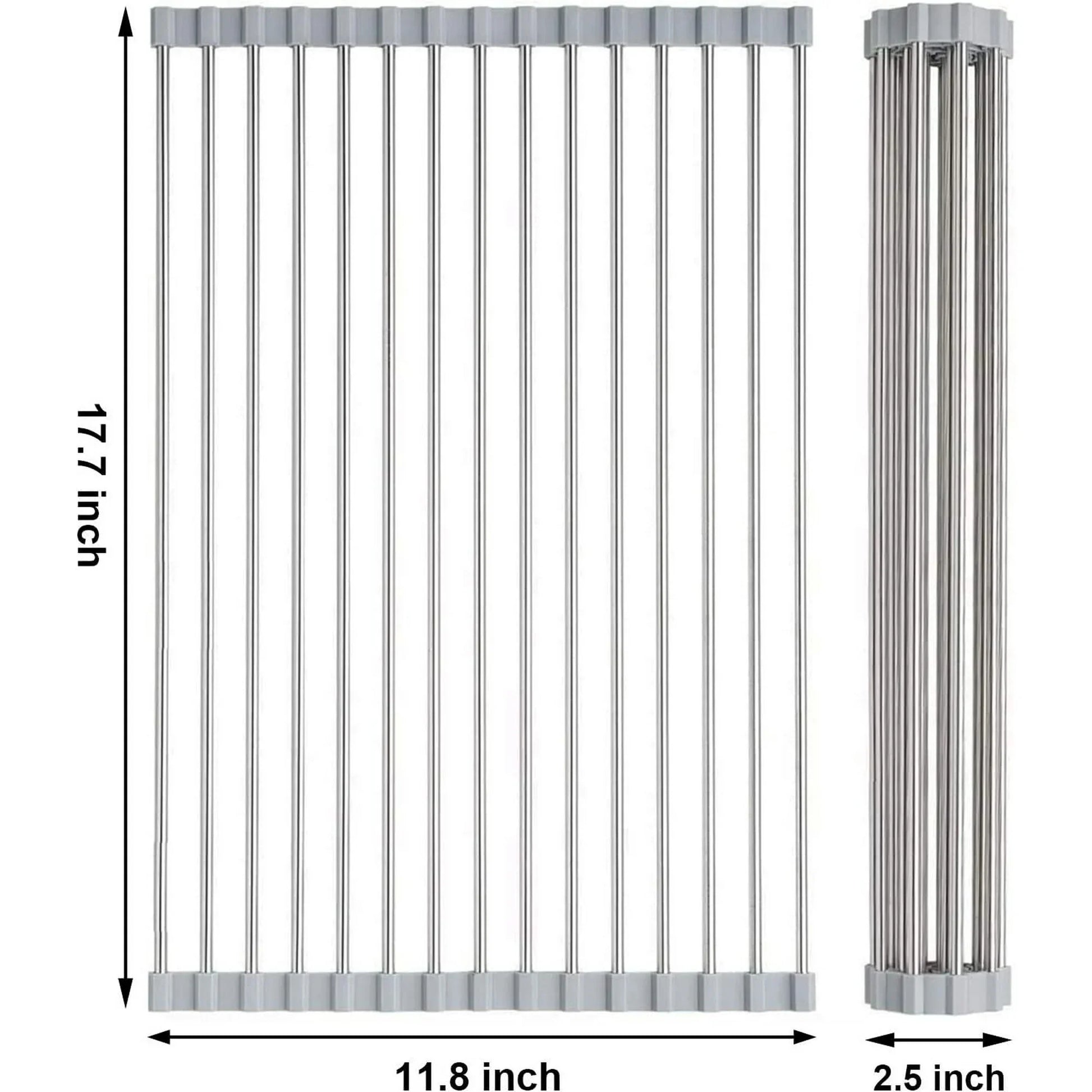 Roll up Dish Drying Rack, Over The Sink Kitchen Sink Dish Rack Multipurpose Stainless Steel Dry Rack Dish Drainer Foldable Dish Drying Rack for Sink Counter (17.7"x11.8")