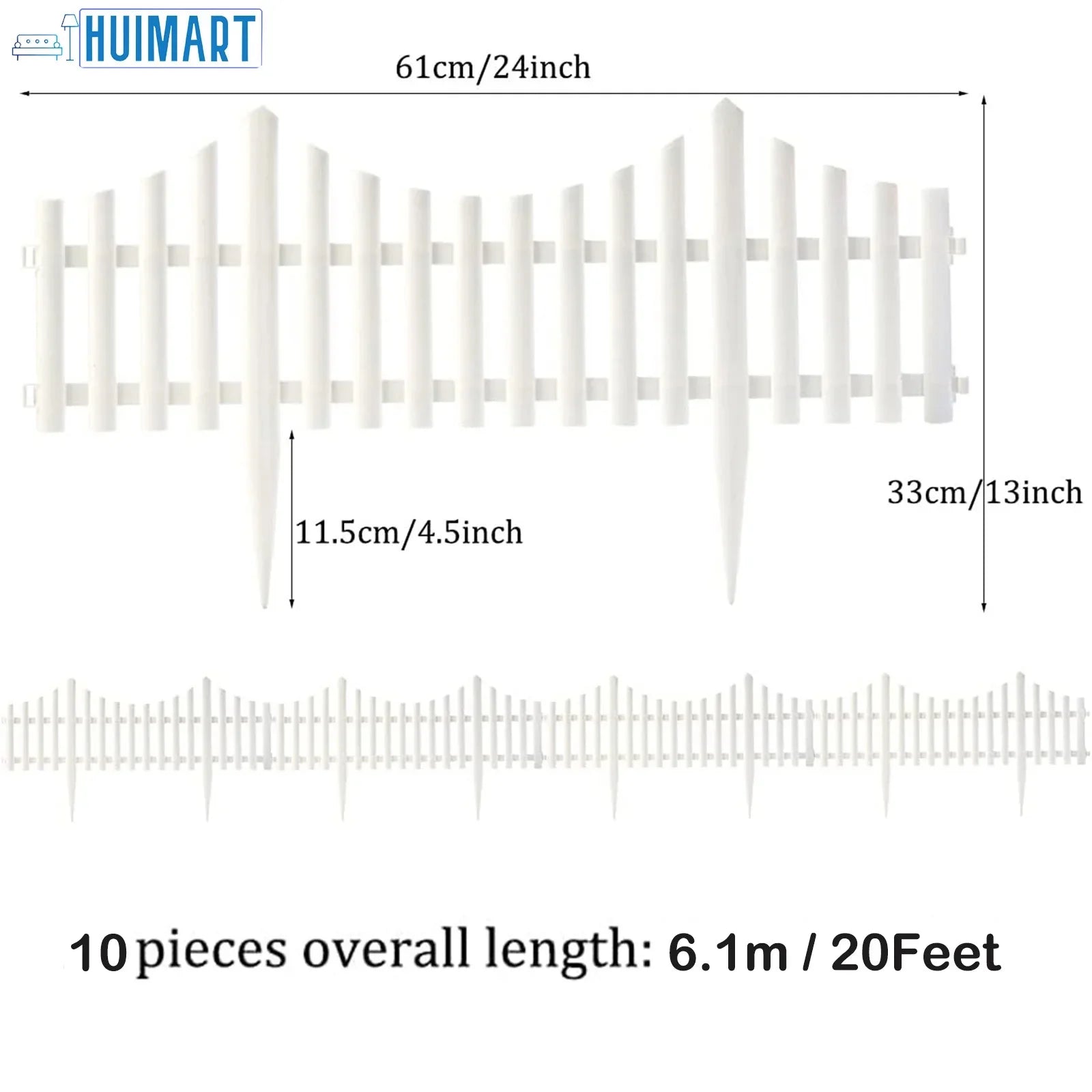 SUSUZI 10-Panel White Picket Fence Plastic Edging Garden Fence Lawn Flowerbed Borders Landscape Path Panels 13in Tall Pack of 10 (Overall Length 20 ft)