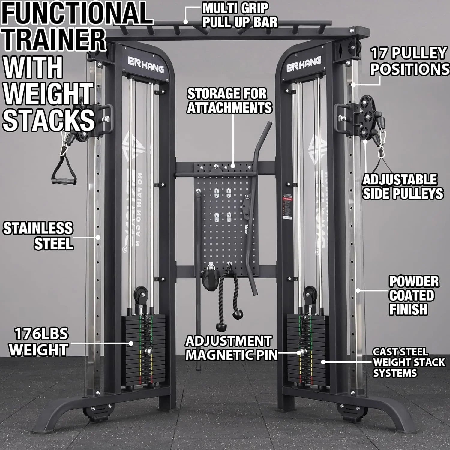 Syedee Functional Trainer with 352lbs Weight Stack, 2:1&1:1 Ratio System Cable Crossover Machine with Independent Double Pulley System, 2000lbs Multi-Functional Chest Fly Machine