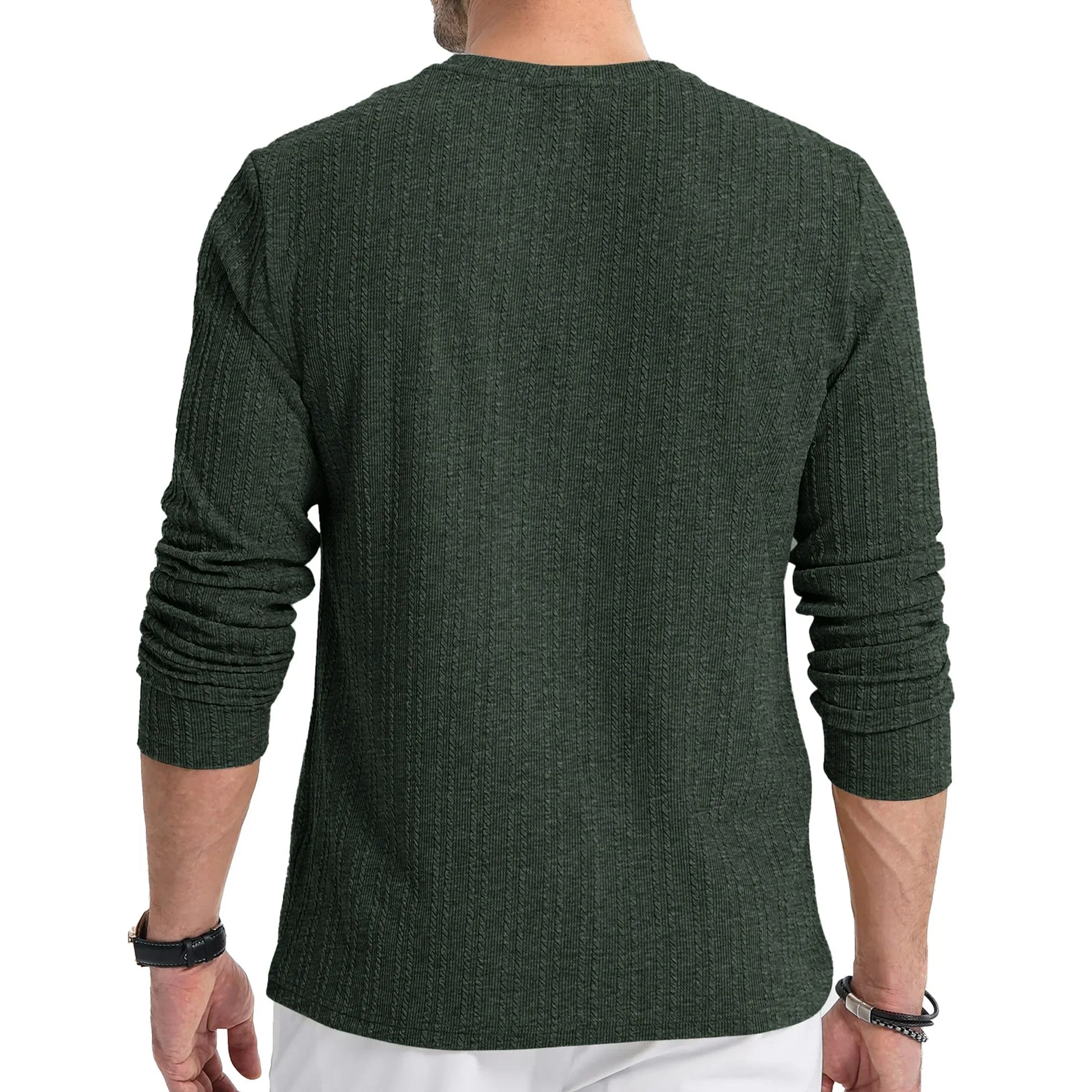 Thrilos Mens Long Sleeve Shirts Crewneck Casual Tops Pullover Work Shirts Stretch Textured Knit T-Shirts with Pocket