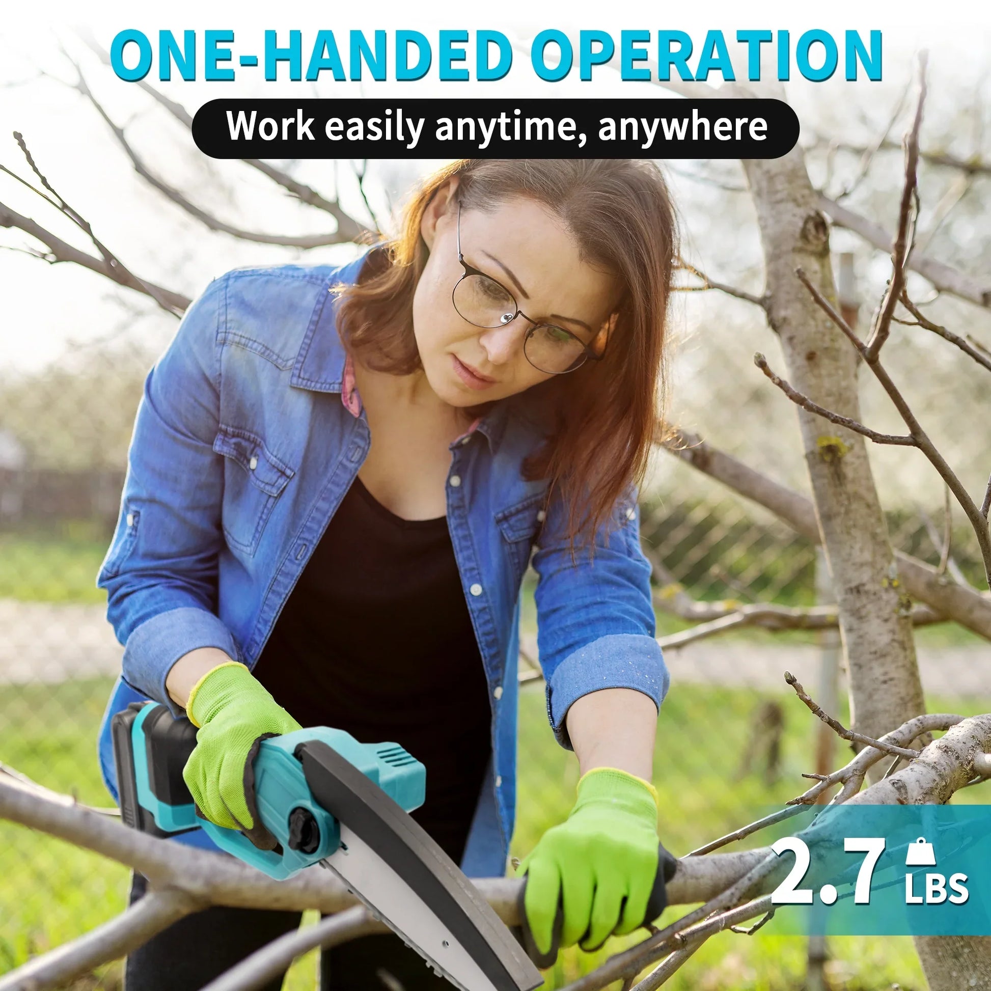 - Lightweight & One Hand Operation: Weighing only 2.7 lbs, this compact and lightweight chainsaw is designed for one-handed operation, making it easy for even women and the elderly to use. Its small size enhances maneuverability, and the cordless design eliminates the hassle of wires. Additionally, small chainsaw comes with a convenient carrying case, perfect for storage or taking on the go.