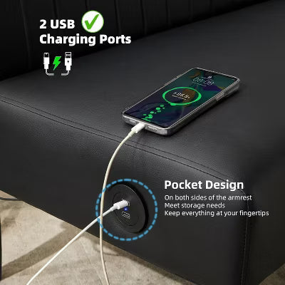 Perfect for tight spaces, this 43inches armless loveseat adds modern function and comfort to bedrooms, offices, dorms, and small living areas. Upholstered in sleek black faux leather, it features 2 built-in USB ports for convenient device charging and a slightly reclined 105° backrest for ergonomic support. The high-resilience foam cushion with U-shaped springs ensures lasting comfort, while solid oak legs and reinforced backrest screws provide sturdy, shake-free use. Easy to assemble in just 15 minutes, this compact couch brings big utility to any small room.