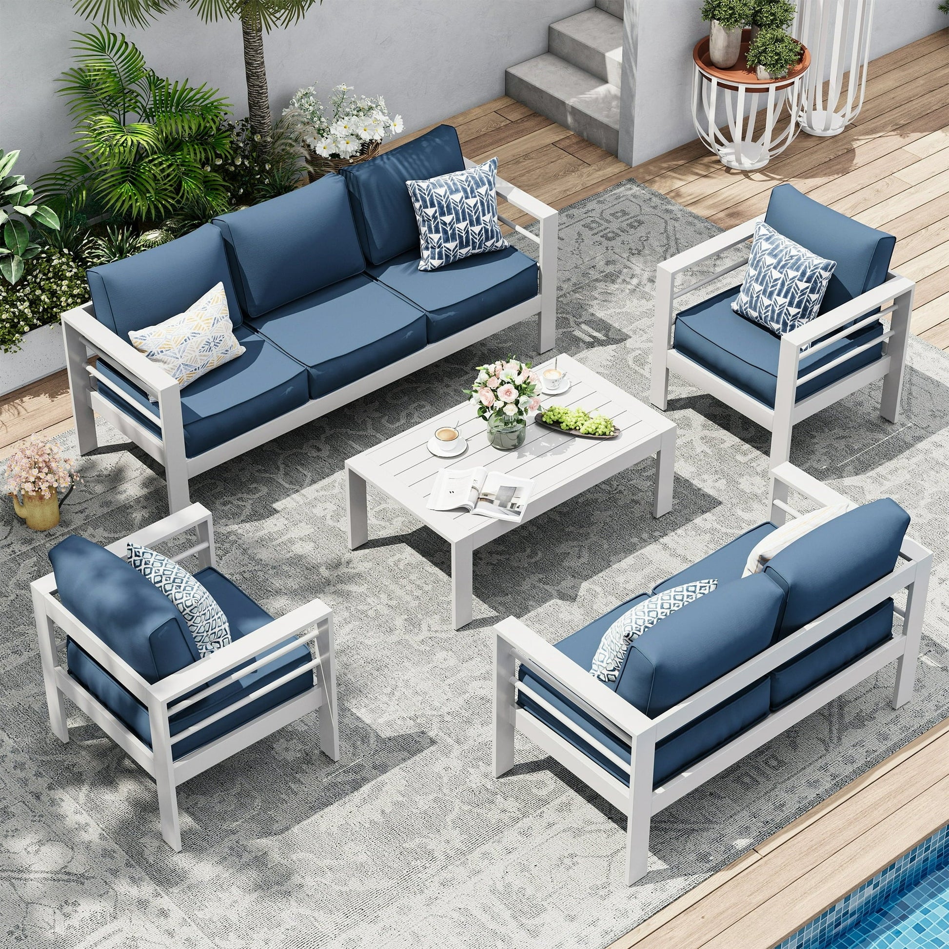 - ✔❤️【5" Thick Sofa Cushion, Comfort】: The aluminum outdoor furniture is equipped with 5 inch thick cushion, The interior is filled with high-quality resilience and high density sponge, providing you with excellent sitting.