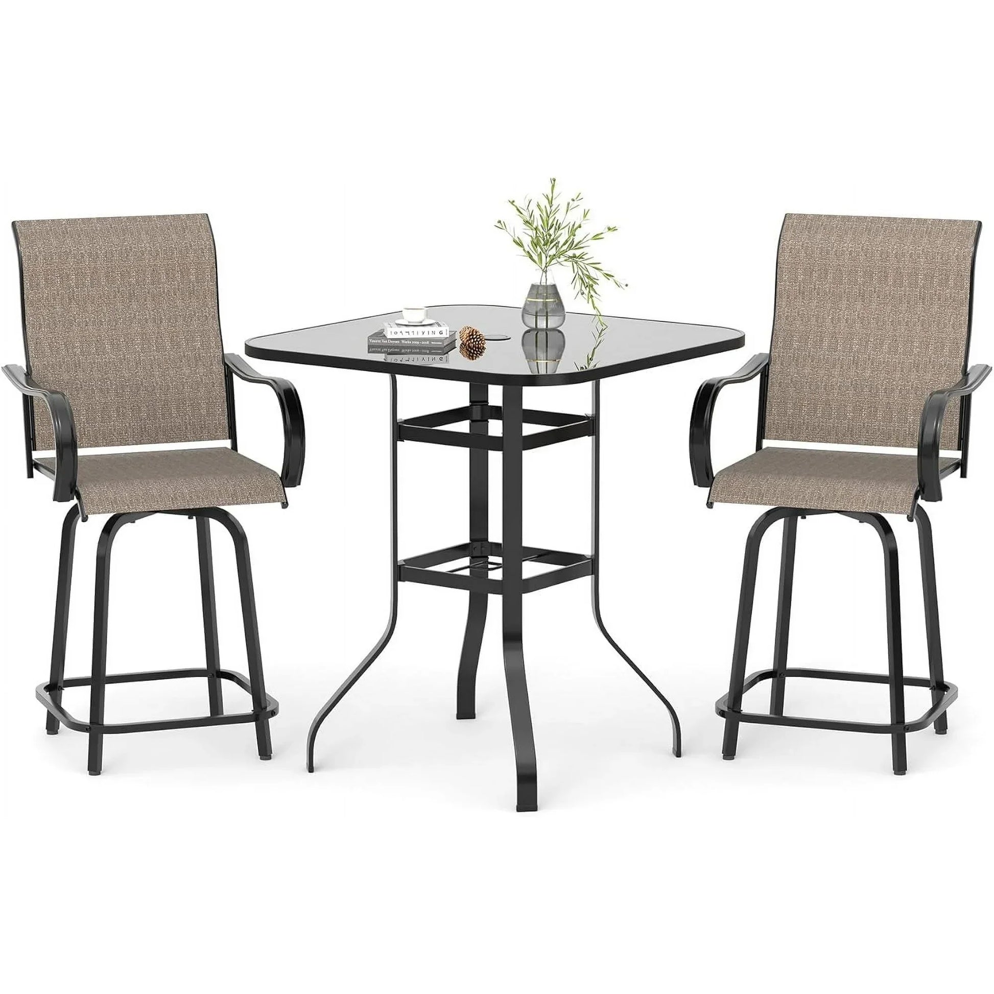 UDPATIO Outdoor Bar Height Set of 3, Patio Swivel High Back Bar Stools Chairs with Bar Table for Backyard, Lawn, Balcony and Pool