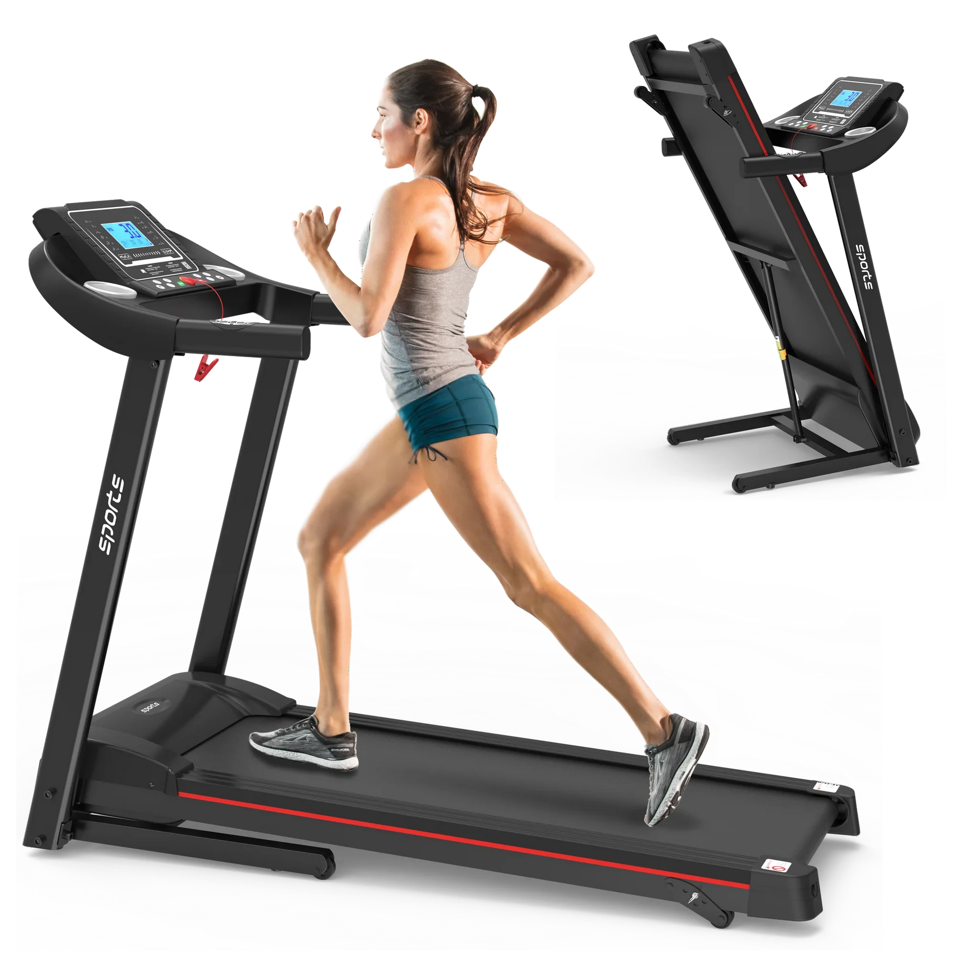 VLDTDRDI Automatic Folding Treadmill with 8mph Speed,50.4" Longer Portable Running Walking Compact Exercise Machine with 5" Screen Display,12 Preset Program, 4-Level Incline and Bluetooth Music