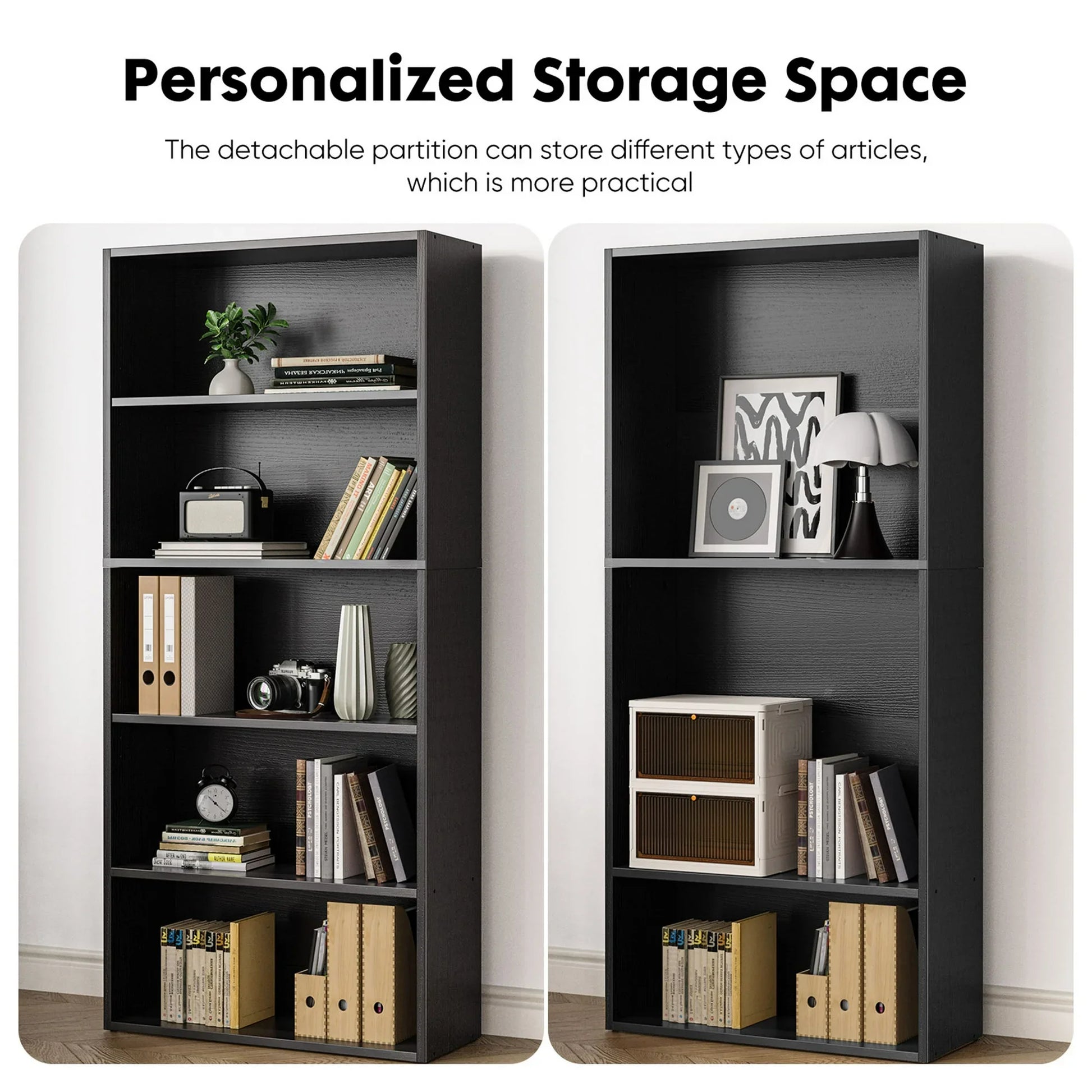 DIY Storage Space: Our adjustable 5/6- tier bookshelf measures 9. 2"D x 23. 8"L x 53"H/63"H, allowing you to customize your space. With a load capacity of 20 lbs per shelf and a height of 10. 5 ", you can create a storage system that best suits your needs.